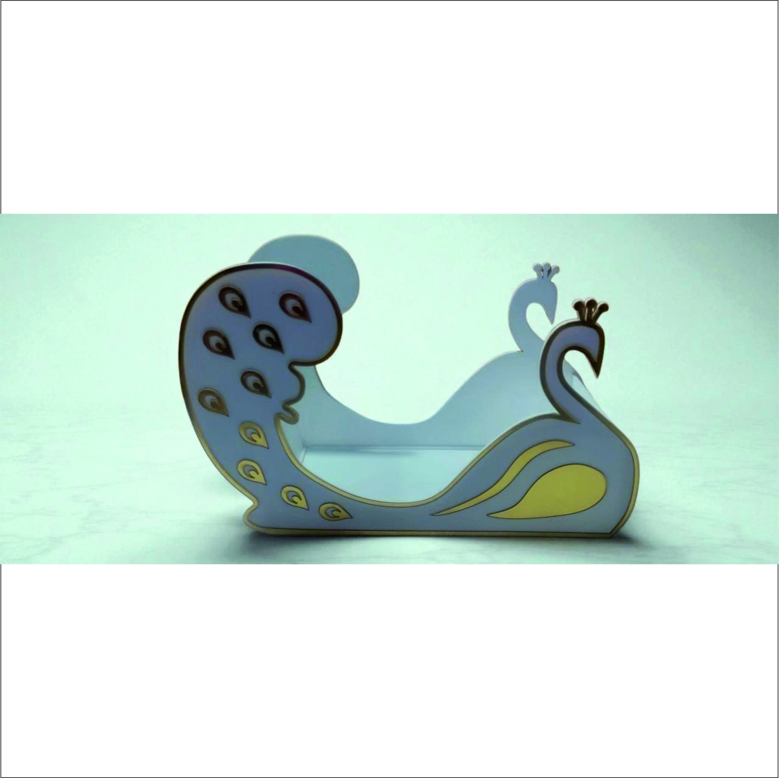 🦚 Elegant Acrylic Peacock Pallakku crafted for plate decoration at engagements, weddings & half‑saree ceremonies.